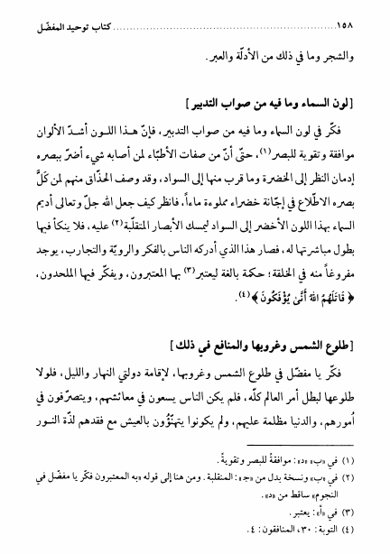 كتاب فكّر المعروف بتوحيد المفضل ، أملاه الإمام أبوعبدالله الصادق عليه السلام