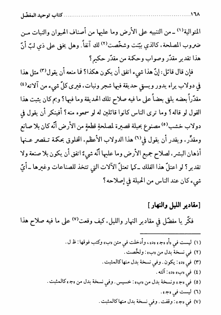 كتاب فكّر المعروف بتوحيد المفضل ، أملاه الإمام أبوعبدالله الصادق عليه السلام