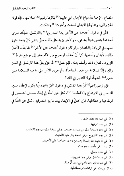 كتاب فكّر المعروف بتوحيد المفضل ، أملاه الإمام أبوعبدالله الصادق عليه السلام