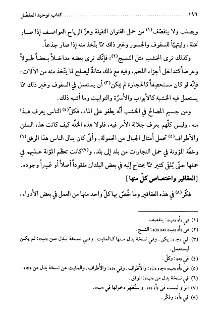 كتاب فكّر المعروف بتوحيد المفضل ، أملاه الإمام أبوعبدالله الصادق عليه السلام