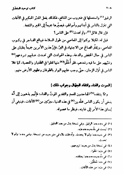 كتاب فكّر المعروف بتوحيد المفضل ، أملاه الإمام أبوعبدالله الصادق عليه السلام