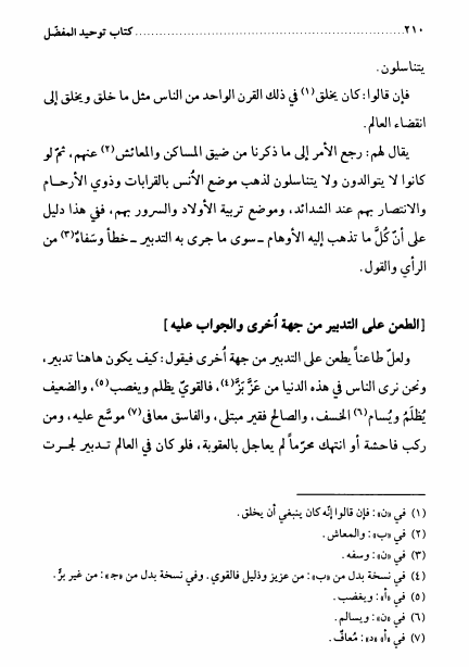 كتاب فكّر المعروف بتوحيد المفضل ، أملاه الإمام أبوعبدالله الصادق عليه السلام