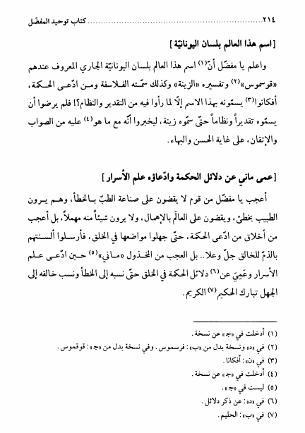 كتاب فكّر المعروف بتوحيد المفضل ، أملاه الإمام أبوعبدالله الصادق عليه السلام
