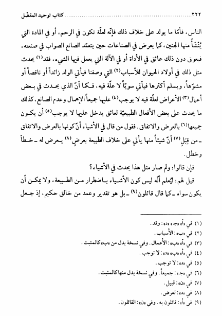 كتاب فكّر المعروف بتوحيد المفضل ، أملاه الإمام أبوعبدالله الصادق عليه السلام