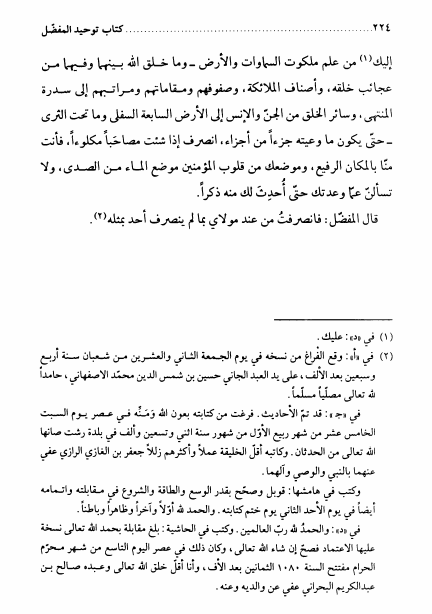 كتاب فكّر المعروف بتوحيد المفضل ، أملاه الإمام أبوعبدالله الصادق عليه السلام