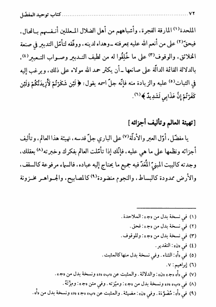 كتاب فكّر المعروف بتوحيد المفضل ، أملاه الإمام أبوعبدالله الصادق عليه السلام