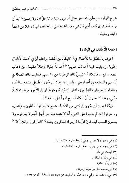 كتاب فكّر المعروف بتوحيد المفضل ، أملاه الإمام أبوعبدالله الصادق عليه السلام