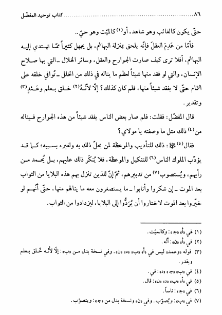 كتاب فكّر المعروف بتوحيد المفضل ، أملاه الإمام أبوعبدالله الصادق عليه السلام