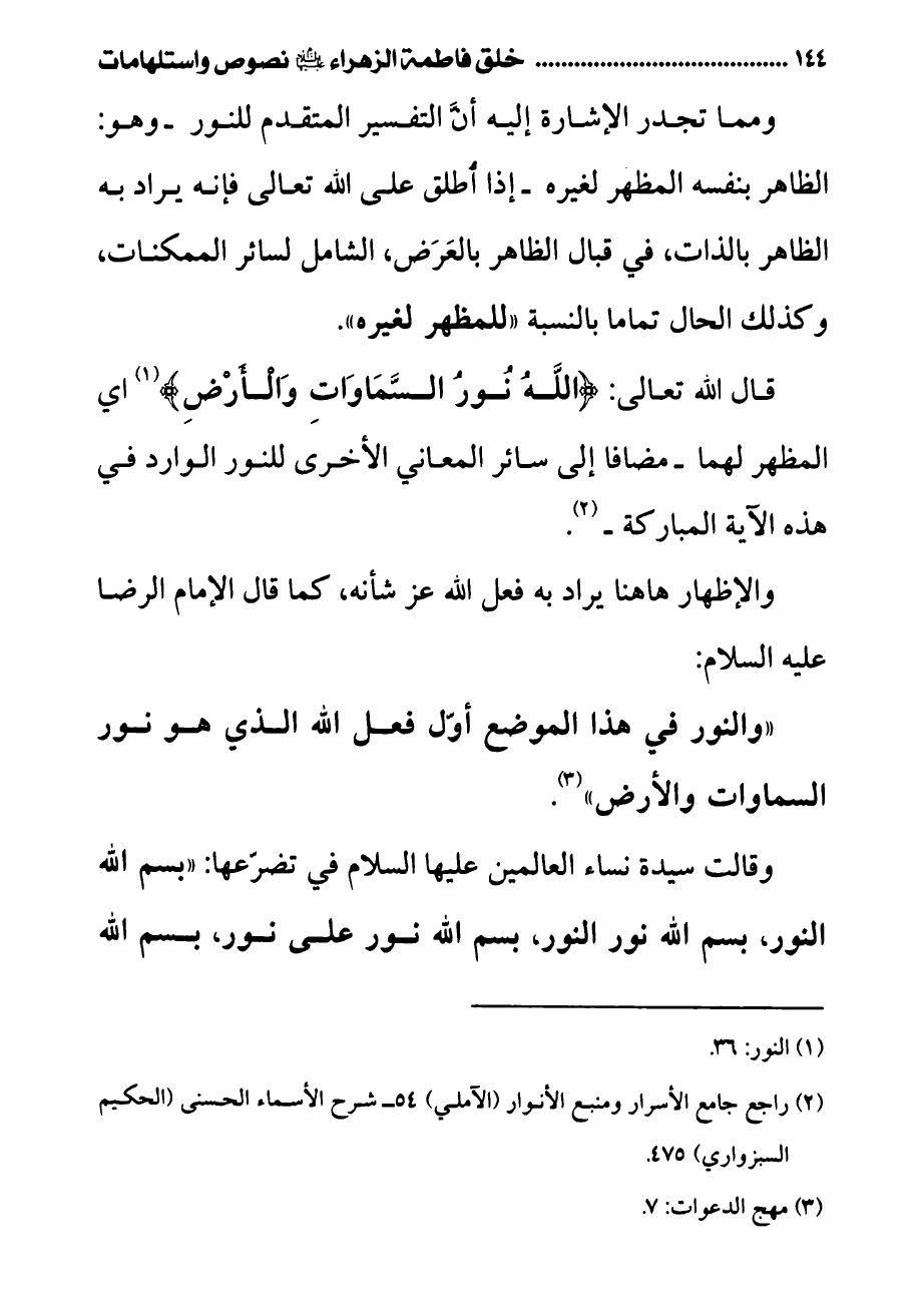 خلق فاطمة الزهراء ع ، نصوص واستلهامات