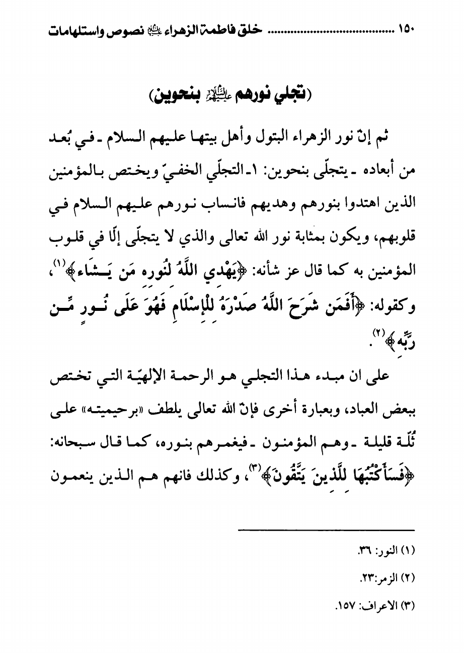 خلق فاطمة الزهراء ع ، نصوص واستلهامات
