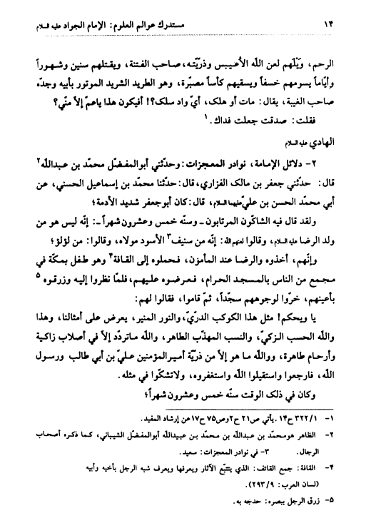 نام کتاب : مستدرك عوالم العلوم والمعارف والأحوال من الأيات والأخبار والأقوال - ج23 - الإمام محمد بن علي الجواد عليهما السلام - نویسنده : السيد محمد باقر موحد الأبطحي جلد : 23 صفحه : 14