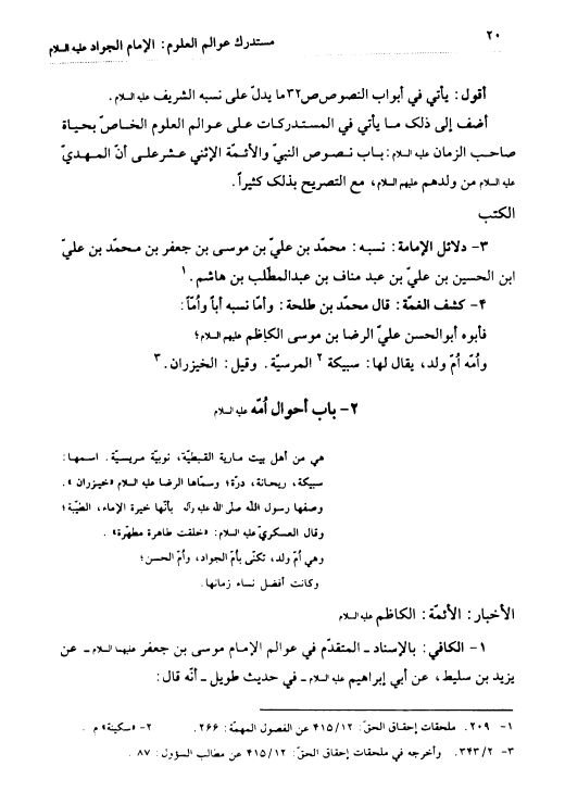 نام کتاب : مستدرك عوالم العلوم والمعارف والأحوال من الأيات والأخبار والأقوال - ج23 - الإمام محمد بن علي الجواد عليهما السلام - نویسنده : السيد محمد باقر موحد الأبطحي جلد : 23 صفحه : 20