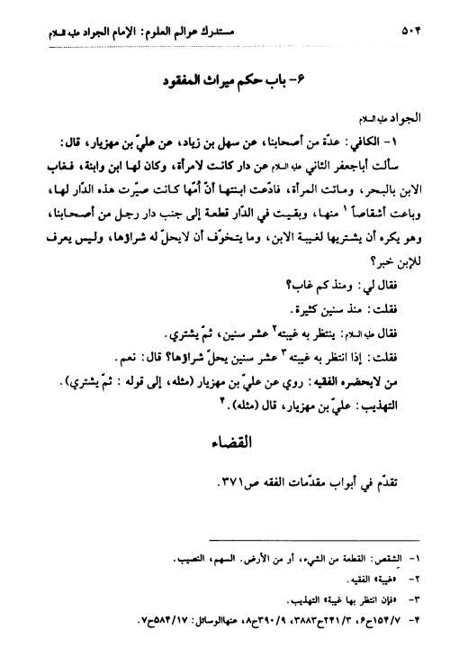 نام کتاب : مستدرك عوالم العلوم والمعارف والأحوال من الأيات والأخبار والأقوال - ج23 - الإمام محمد بن علي الجواد عليهما السلام - نویسنده : السيد محمد باقر موحد الأبطحي جلد : 23 صفحه : 504