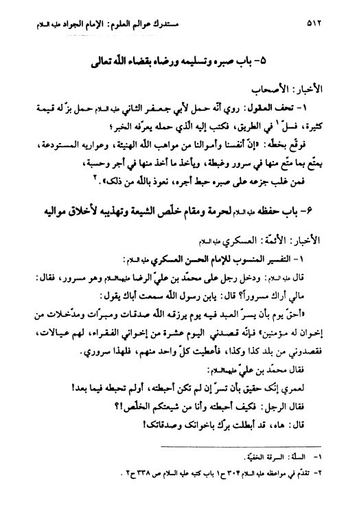 نام کتاب : مستدرك عوالم العلوم والمعارف والأحوال من الأيات والأخبار والأقوال - ج23 - الإمام محمد بن علي الجواد عليهما السلام - نویسنده : السيد محمد باقر موحد الأبطحي جلد : 23 صفحه : 512