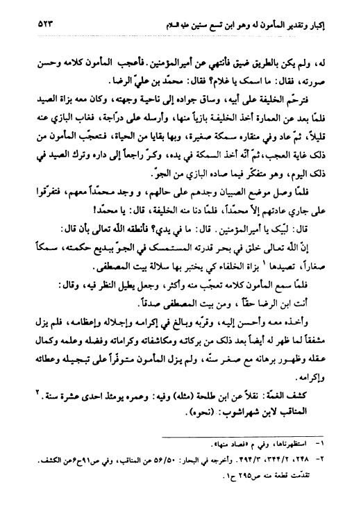 نام کتاب : مستدرك عوالم العلوم والمعارف والأحوال من الأيات والأخبار والأقوال - ج23 - الإمام محمد بن علي الجواد عليهما السلام - نویسنده : السيد محمد باقر موحد الأبطحي جلد : 23 صفحه : 523