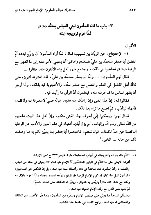 نام کتاب : مستدرك عوالم العلوم والمعارف والأحوال من الأيات والأخبار والأقوال - ج23 - الإمام محمد بن علي الجواد عليهما السلام - نویسنده : السيد محمد باقر موحد الأبطحي جلد : 23 صفحه : 524