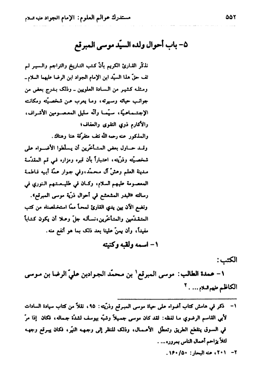 نام کتاب : مستدرك عوالم العلوم والمعارف والأحوال من الأيات والأخبار والأقوال - ج23 - الإمام محمد بن علي الجواد عليهما السلام - نویسنده : السيد محمد باقر موحد الأبطحي جلد : 23 صفحه : 552