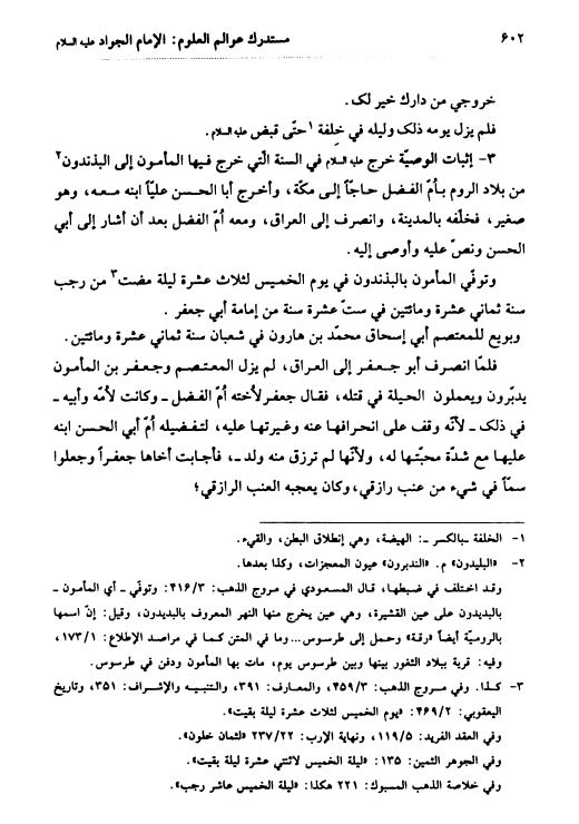 نام کتاب : مستدرك عوالم العلوم والمعارف والأحوال من الأيات والأخبار والأقوال - ج23 - الإمام محمد بن علي الجواد عليهما السلام - نویسنده : السيد محمد باقر موحد الأبطحي جلد : 23 صفحه : 602
