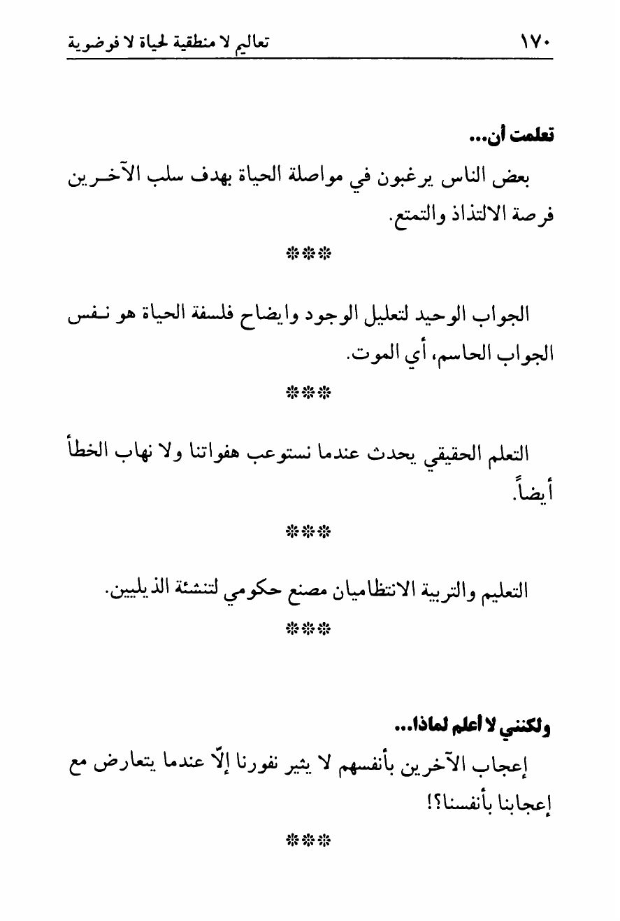 تعاليم لا منطقية لحياة لا فوضوية ، ما نتعلمه من حذاري
