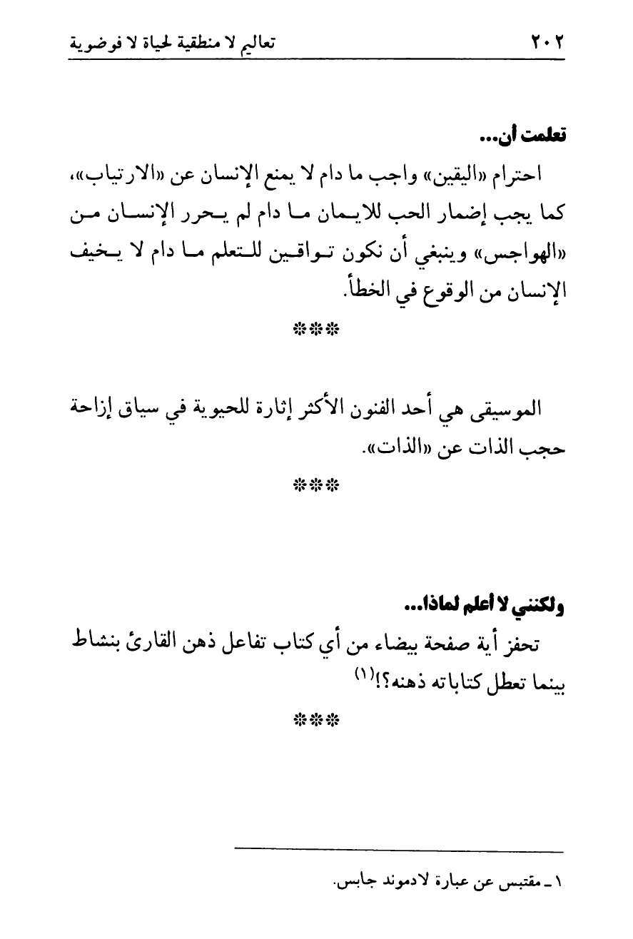 تعاليم لا منطقية لحياة لا فوضوية ، ما نتعلمه من حذاري
