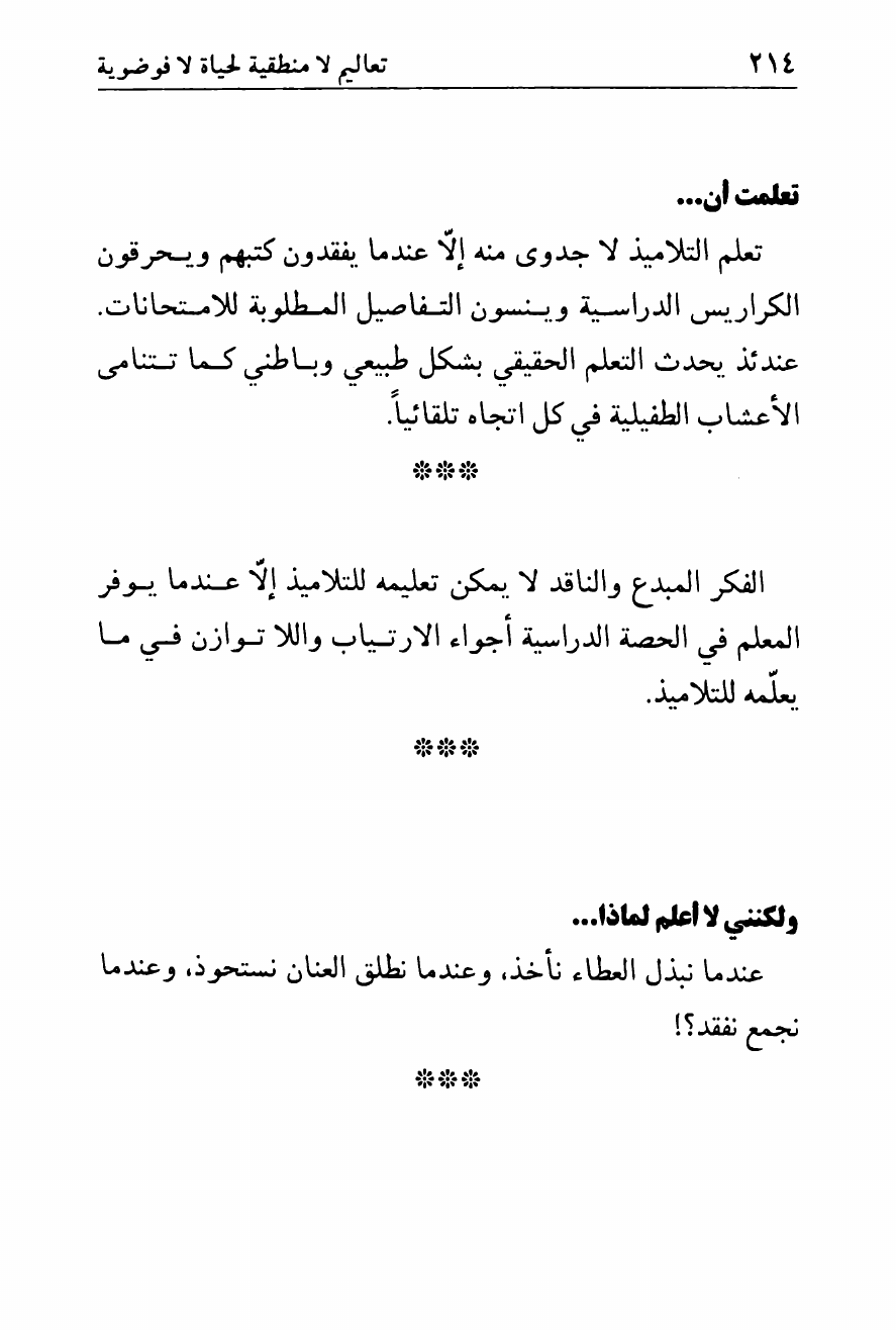 تعاليم لا منطقية لحياة لا فوضوية ، ما نتعلمه من حذاري