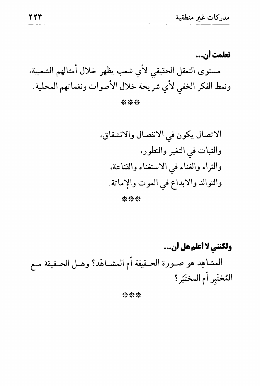 تعاليم لا منطقية لحياة لا فوضوية ، ما نتعلمه من حذاري