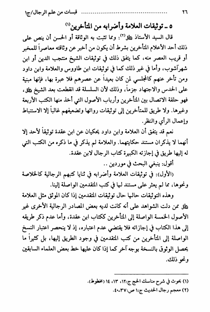 نام کتاب : قبسات من علم الرجال ، أبحاث السيد محمد رضا السيستاني ، جمعها ونظمها السيد محمد البكاء - ج1ج2 نویسنده : السيد محمد رضا السيستاني جلد : 1 صفحه : 26