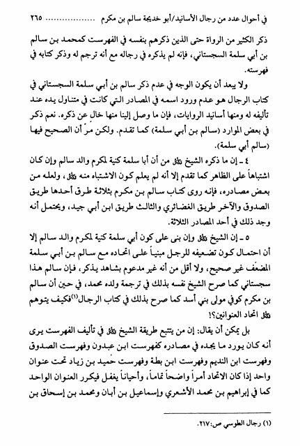 نام کتاب : قبسات من علم الرجال ، أبحاث السيد محمد رضا السيستاني ، جمعها ونظمها السيد محمد البكاء - ج1ج2 نویسنده : السيد محمد رضا السيستاني جلد : 1 صفحه : 265