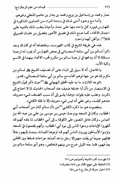 نام کتاب : قبسات من علم الرجال ، أبحاث السيد محمد رضا السيستاني ، جمعها ونظمها السيد محمد البكاء - ج1ج2 نویسنده : السيد محمد رضا السيستاني جلد : 1 صفحه : 266