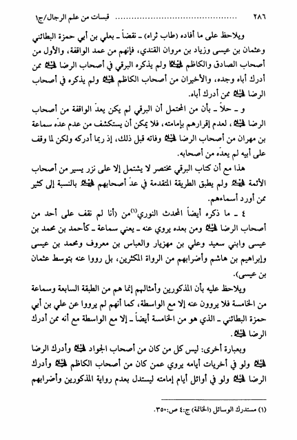 نام کتاب : قبسات من علم الرجال ، أبحاث السيد محمد رضا السيستاني ، جمعها ونظمها السيد محمد البكاء - ج1ج2 نویسنده : السيد محمد رضا السيستاني جلد : 1 صفحه : 286