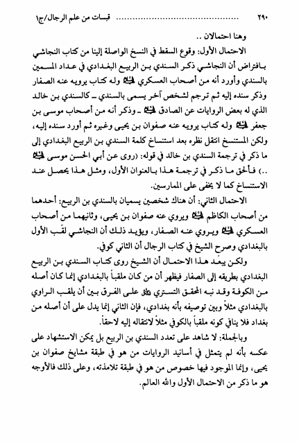 نام کتاب : قبسات من علم الرجال ، أبحاث السيد محمد رضا السيستاني ، جمعها ونظمها السيد محمد البكاء - ج1ج2 نویسنده : السيد محمد رضا السيستاني جلد : 1 صفحه : 290