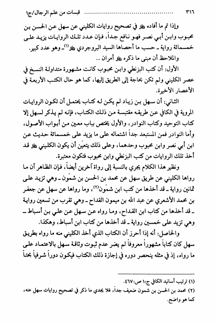 نام کتاب : قبسات من علم الرجال ، أبحاث السيد محمد رضا السيستاني ، جمعها ونظمها السيد محمد البكاء - ج1ج2 نویسنده : السيد محمد رضا السيستاني جلد : 1 صفحه : 316