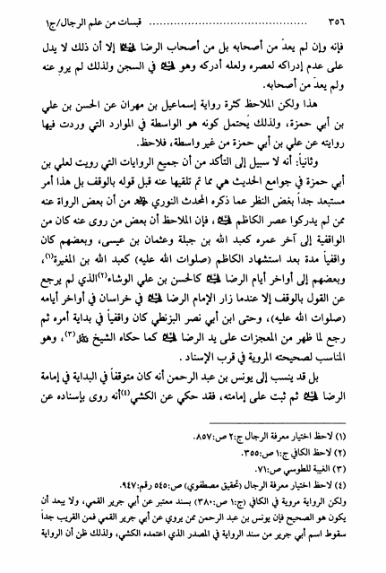 نام کتاب : قبسات من علم الرجال ، أبحاث السيد محمد رضا السيستاني ، جمعها ونظمها السيد محمد البكاء - ج1ج2 نویسنده : السيد محمد رضا السيستاني جلد : 1 صفحه : 356