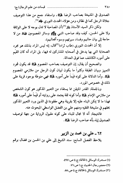 نام کتاب : قبسات من علم الرجال ، أبحاث السيد محمد رضا السيستاني ، جمعها ونظمها السيد محمد البكاء - ج1ج2 نویسنده : السيد محمد رضا السيستاني جلد : 1 صفحه : 380