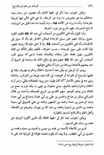 نام کتاب : قبسات من علم الرجال ، أبحاث السيد محمد رضا السيستاني ، جمعها ونظمها السيد محمد البكاء - ج1ج2 نویسنده : السيد محمد رضا السيستاني جلد : 1 صفحه : 436