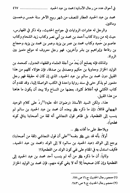 نام کتاب : قبسات من علم الرجال ، أبحاث السيد محمد رضا السيستاني ، جمعها ونظمها السيد محمد البكاء - ج1ج2 نویسنده : السيد محمد رضا السيستاني جلد : 1 صفحه : 467
