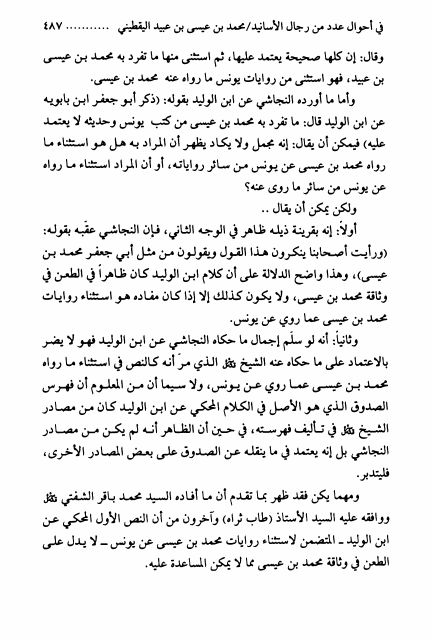 نام کتاب : قبسات من علم الرجال ، أبحاث السيد محمد رضا السيستاني ، جمعها ونظمها السيد محمد البكاء - ج1ج2 نویسنده : السيد محمد رضا السيستاني جلد : 1 صفحه : 487
