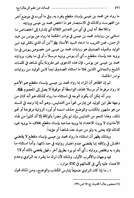 نام کتاب : قبسات من علم الرجال ، أبحاث السيد محمد رضا السيستاني ، جمعها ونظمها السيد محمد البكاء - ج1ج2 نویسنده : السيد محمد رضا السيستاني جلد : 1 صفحه : 496