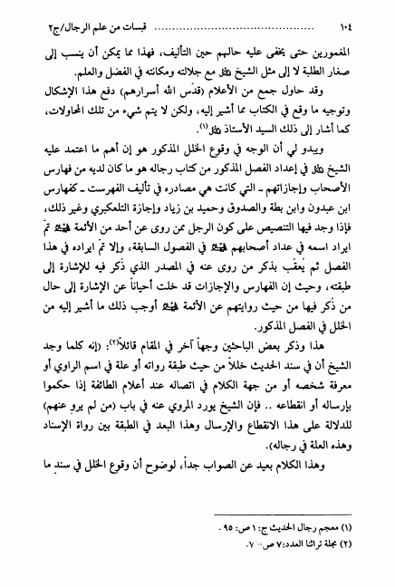 نام کتاب : قبسات من علم الرجال ، أبحاث السيد محمد رضا السيستاني ، جمعها ونظمها السيد محمد البكاء - ج1ج2 نویسنده : السيد محمد رضا السيستاني جلد : 2 صفحه : 104