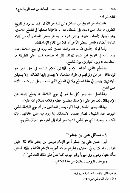 نام کتاب : قبسات من علم الرجال ، أبحاث السيد محمد رضا السيستاني ، جمعها ونظمها السيد محمد البكاء - ج1ج2 نویسنده : السيد محمد رضا السيستاني جلد : 2 صفحه : 148