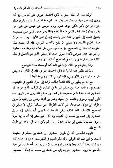 نام کتاب : قبسات من علم الرجال ، أبحاث السيد محمد رضا السيستاني ، جمعها ونظمها السيد محمد البكاء - ج1ج2 نویسنده : السيد محمد رضا السيستاني جلد : 2 صفحه : 234