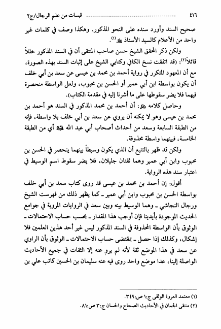 نام کتاب : قبسات من علم الرجال ، أبحاث السيد محمد رضا السيستاني ، جمعها ونظمها السيد محمد البكاء - ج1ج2 نویسنده : السيد محمد رضا السيستاني جلد : 2 صفحه : 416