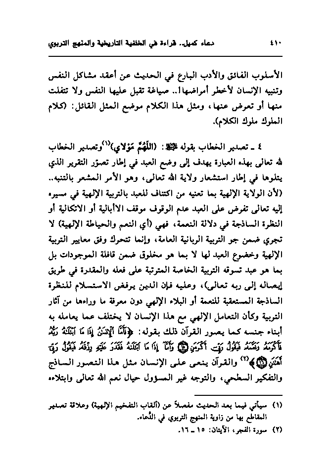 أبعاد معرفية جديدة في دعاء كميل ، قراءة في الخلفية التاريخية والمنهج التربوي