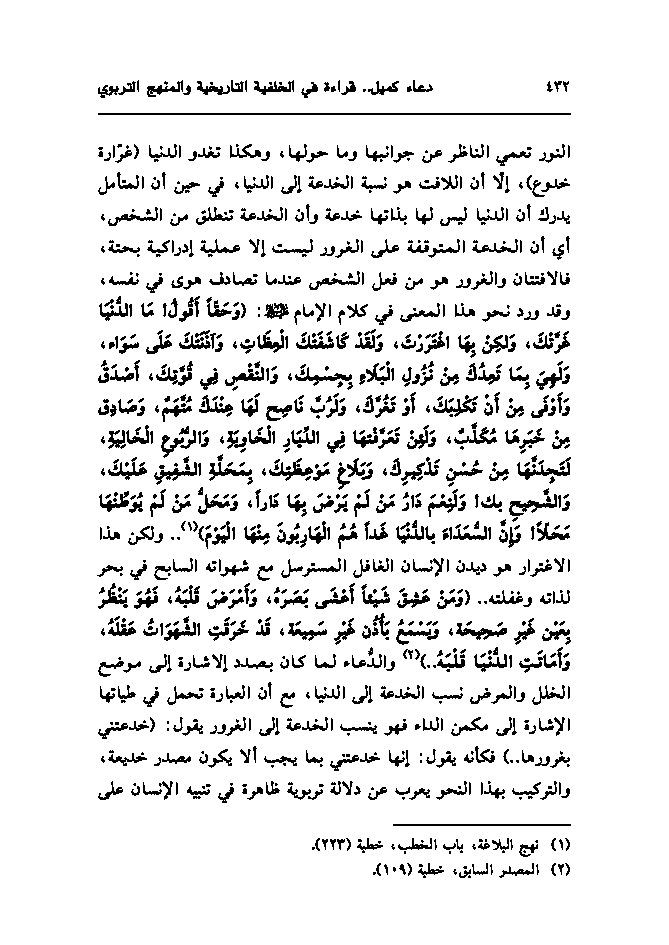 أبعاد معرفية جديدة في دعاء كميل ، قراءة في الخلفية التاريخية والمنهج التربوي