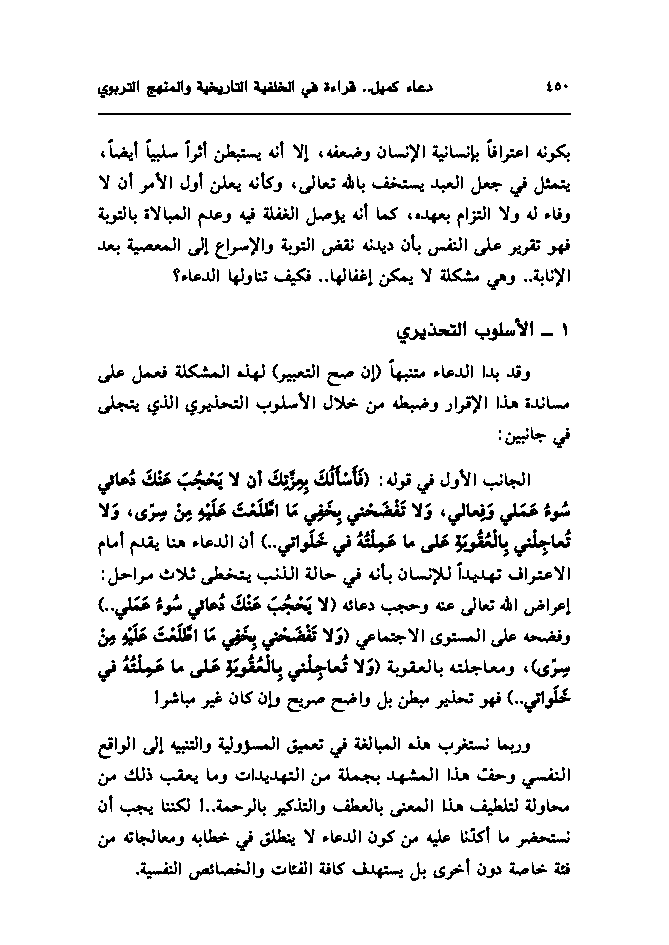 أبعاد معرفية جديدة في دعاء كميل ، قراءة في الخلفية التاريخية والمنهج التربوي