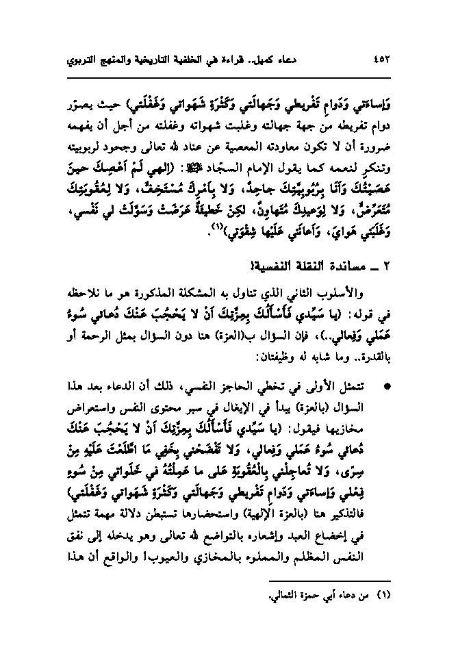 أبعاد معرفية جديدة في دعاء كميل ، قراءة في الخلفية التاريخية والمنهج التربوي