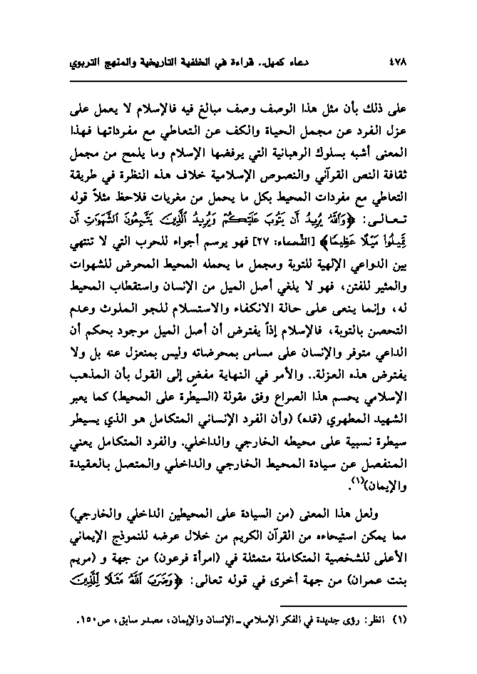 أبعاد معرفية جديدة في دعاء كميل ، قراءة في الخلفية التاريخية والمنهج التربوي