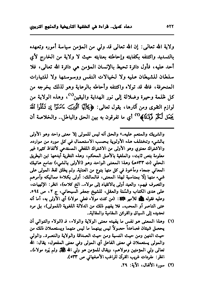 أبعاد معرفية جديدة في دعاء كميل ، قراءة في الخلفية التاريخية والمنهج التربوي