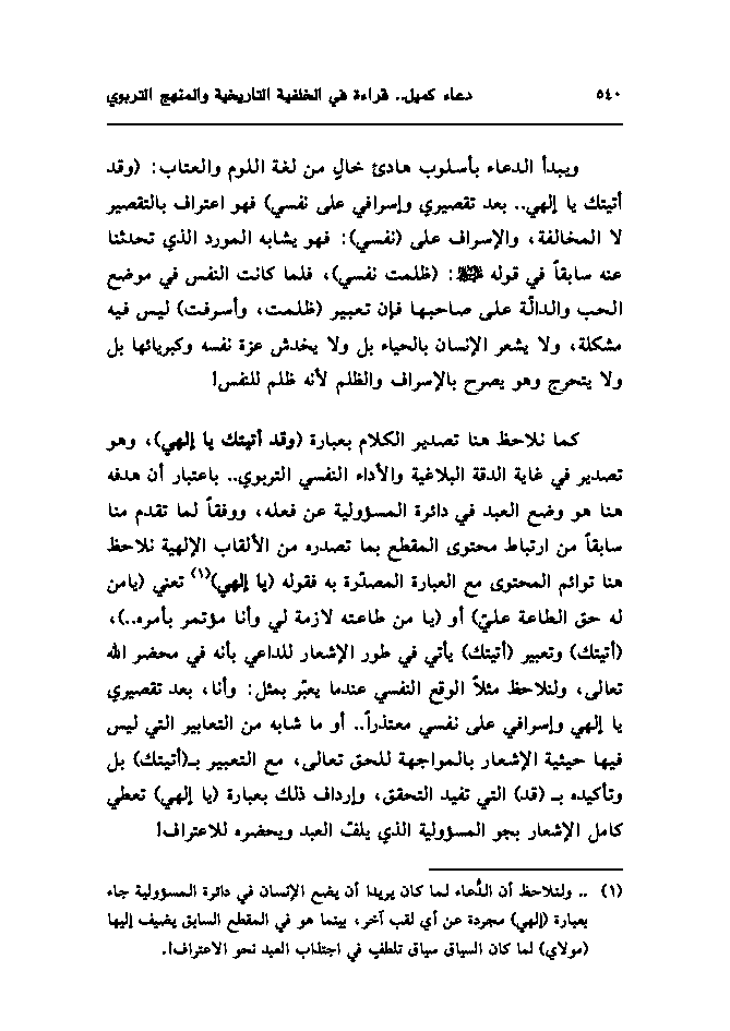 أبعاد معرفية جديدة في دعاء كميل ، قراءة في الخلفية التاريخية والمنهج التربوي