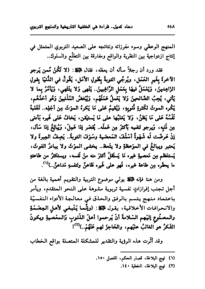 أبعاد معرفية جديدة في دعاء كميل ، قراءة في الخلفية التاريخية والمنهج التربوي